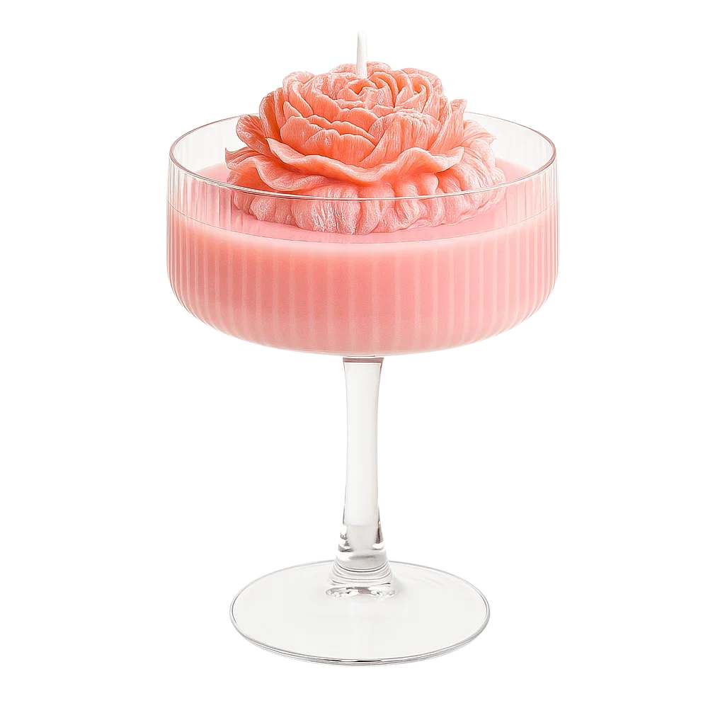 Bring soft romance to your space with our blush-pink candle poured into a vintage-style coupe. The creamy coconut wax is tinted with natural pigments and finished with a hand-sculpted wax rose that looks like a flower sitting on a mousse. Vegan, paraffin-free, and gift-ready.